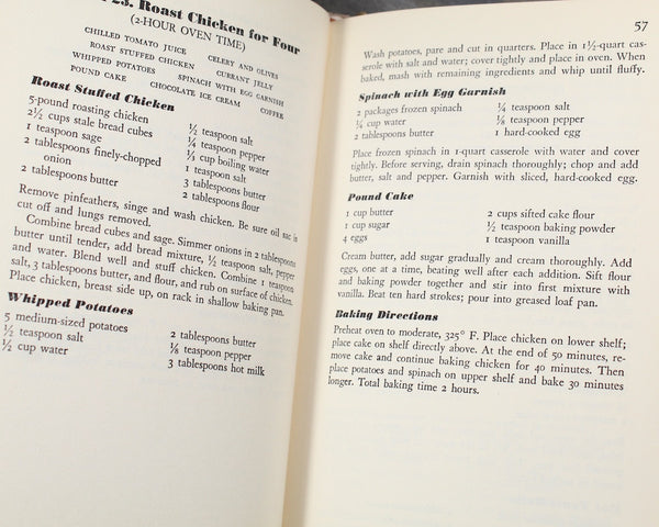According to the dust jacket... "This books tells all about the easiest meals any woman can prepare with time-saving, work saving, moneysaving recipes. Here are complete-in-one oven menus to take you out of the kitchen. Why slave over a hot stove when your well-filled oven can slave by itself?