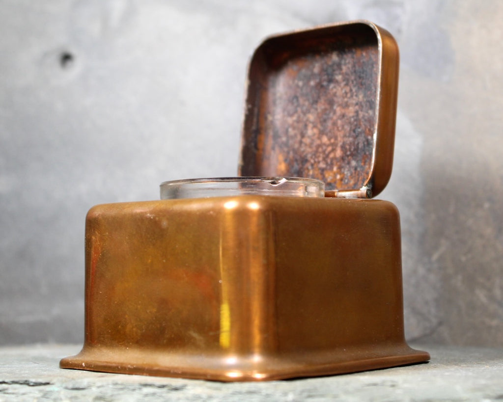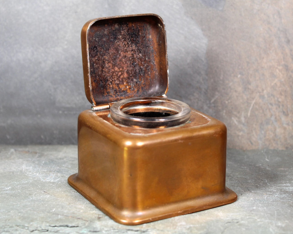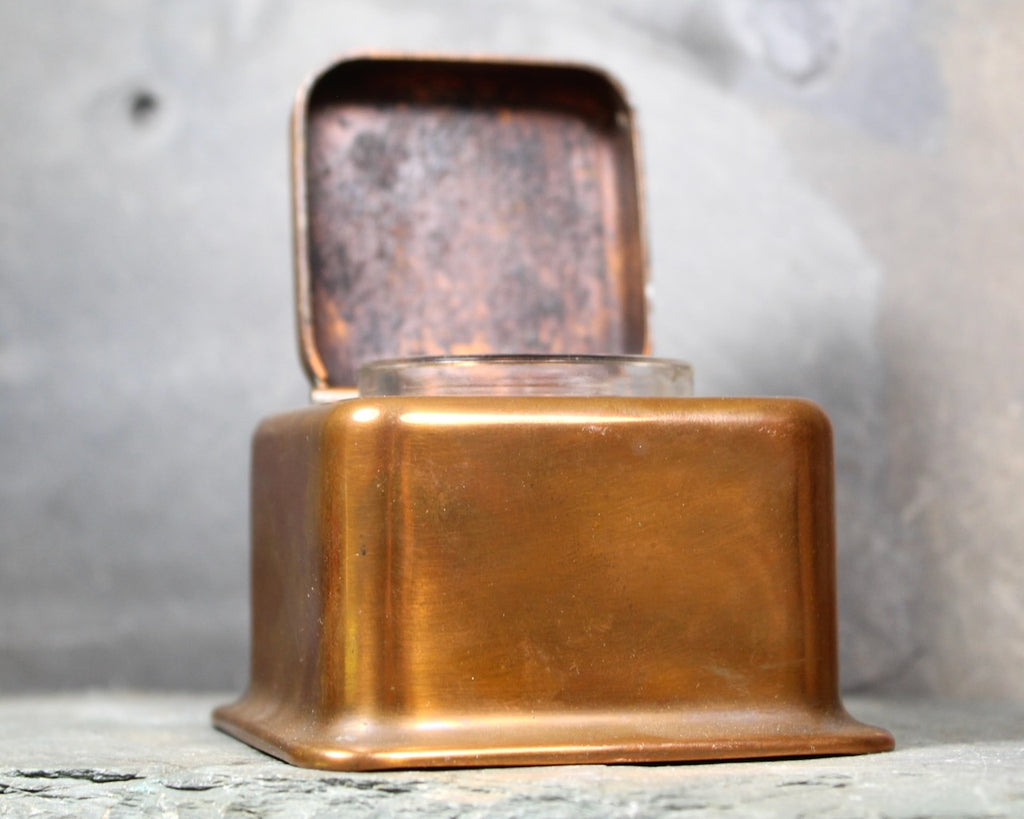 RARE! Antique K & Co Copper Inkwell | Art Deco Styled Inkwell with Glass Ink Pot Insert | Made in USA | Bixley Shop