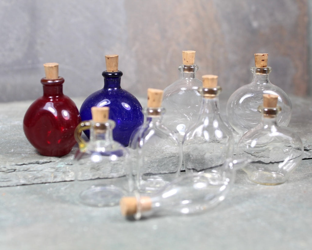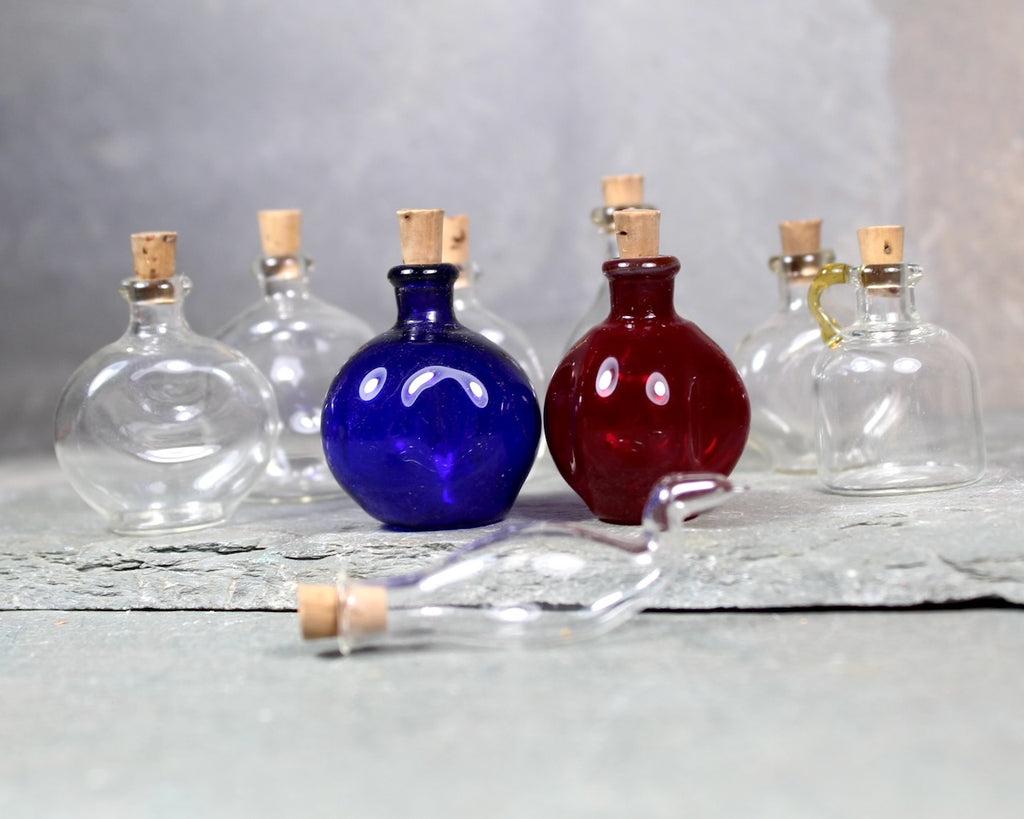 RARE! Collection of 10 Antique Blown Glass Miniature Bottles with Cork Stoppers | Fine Glass Miniature Bottles | Bixley Shop