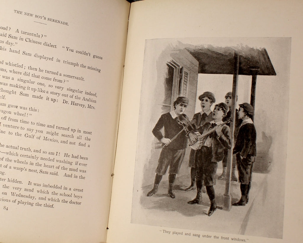 This beautifully preserved, rare and wonderful children's Christmas picture book was published in 1898 by DeWolfe, Fiske & Co. in 1898. Written by Sophie May, this compendium features six Christmas short stories including: