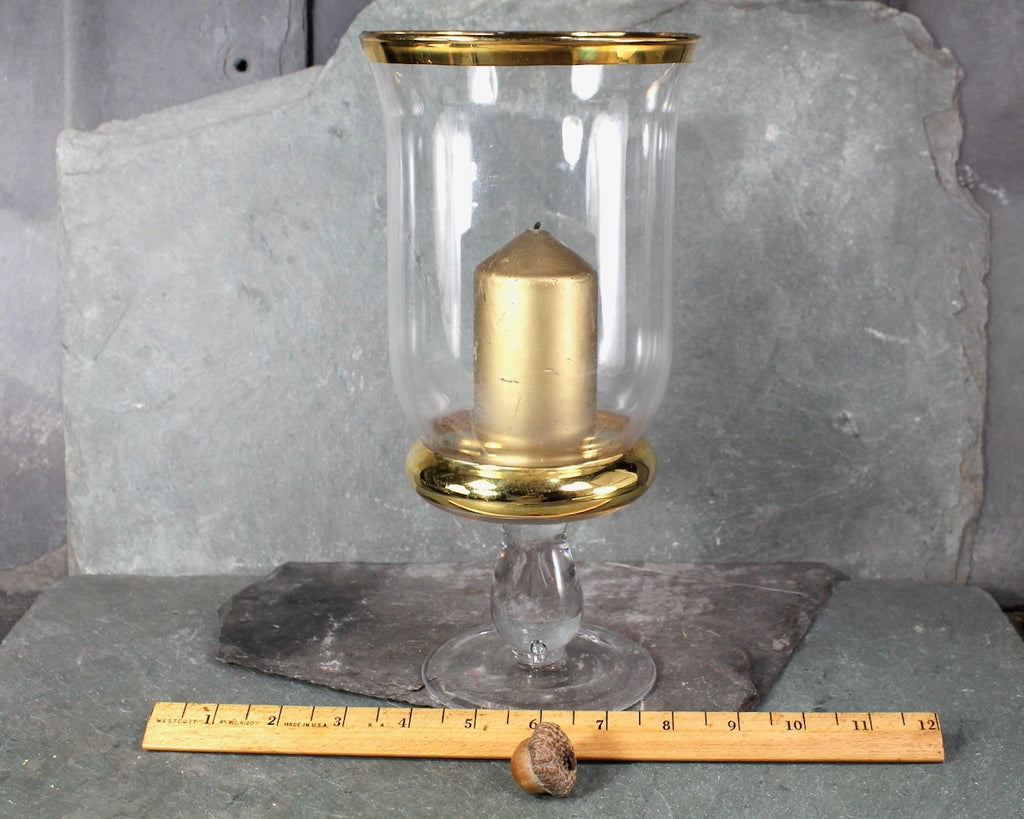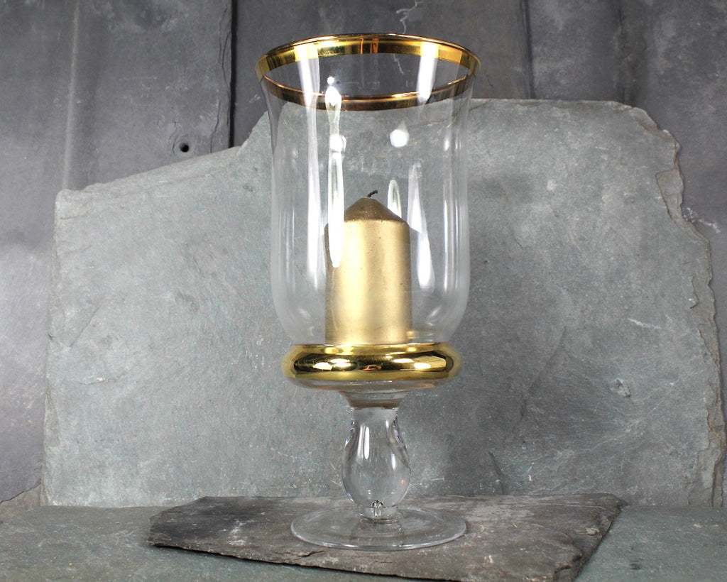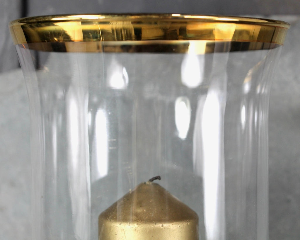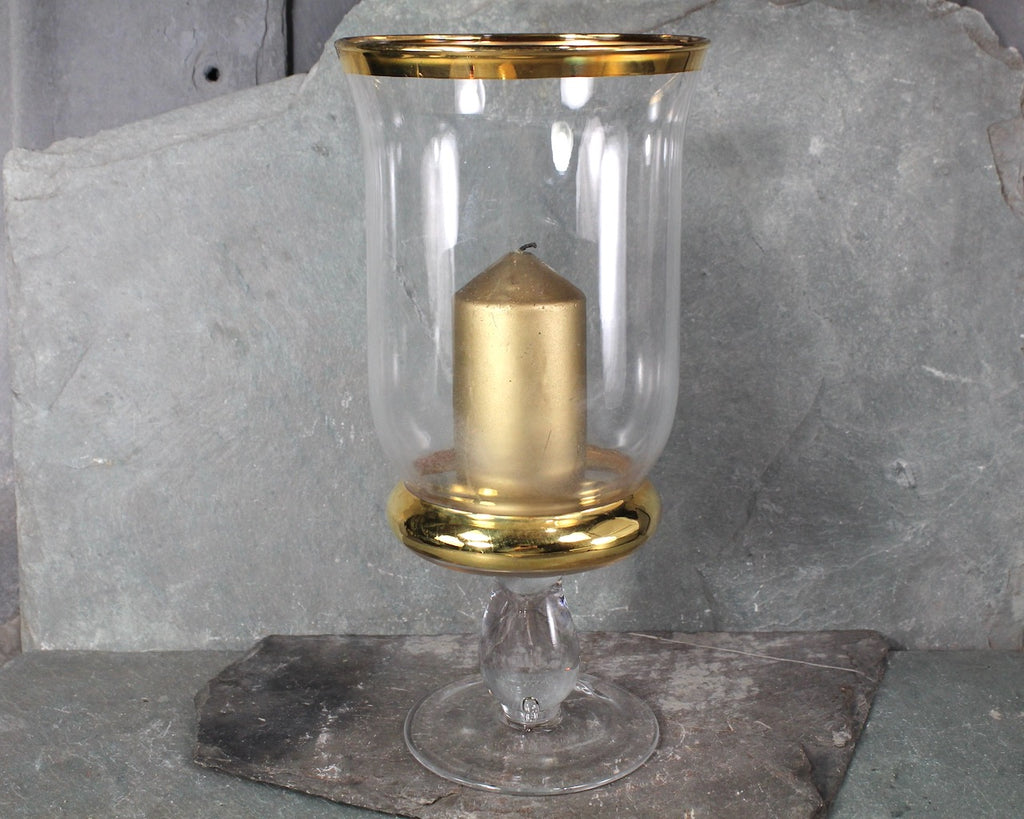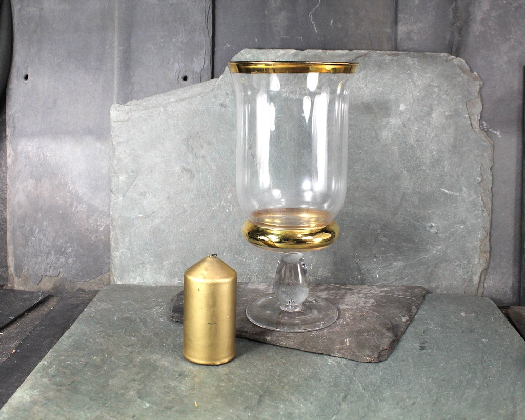 Vintage 1970s Hurricane Glass Gold Candleholder | Vintage Christmas Hurricane Candle | Bixley Shop